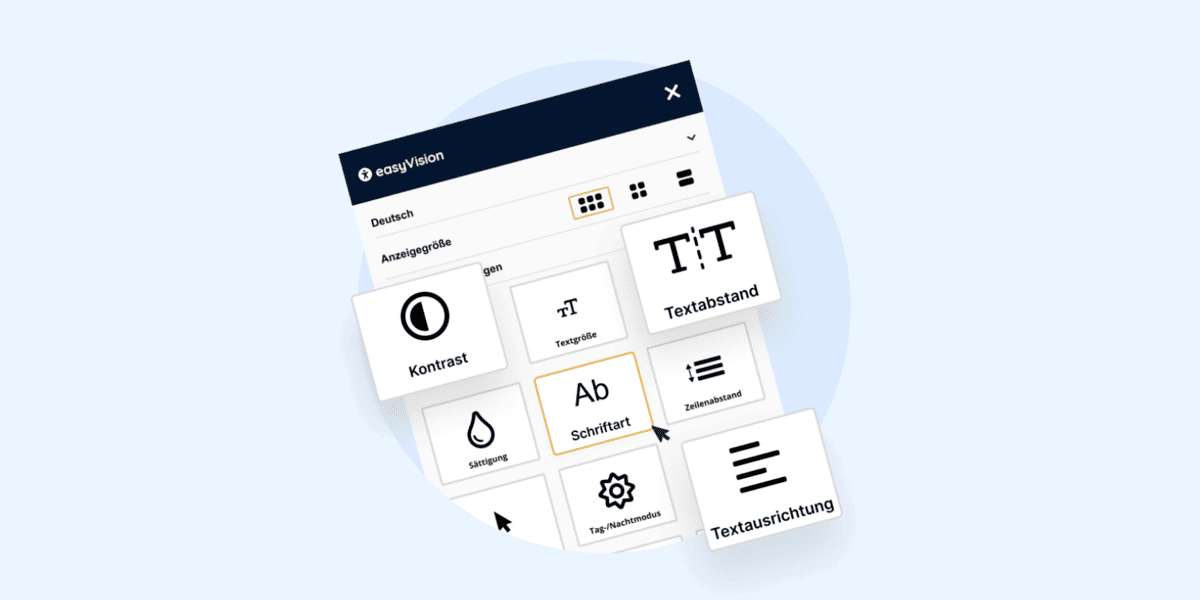 Zusätzlich stehen Ihnen vordefinierte Barrierefreiheits-Profile zur Verfügung, die sich Nutzer mit einem Klick aktivieren können. Auch Spracheinstellungen lassen sich individuell anpassen und mehrsprachig aktivieren oder deaktivieren.