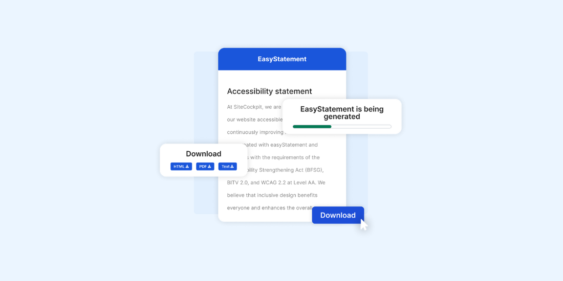 With easyStatement, companies can create and maintain their accessibility statement quickly, up-to-date and in multiple languages - based on real audits. This allows you to fulfill the central documentation requirement of the BFSG reliably and audit-proof.